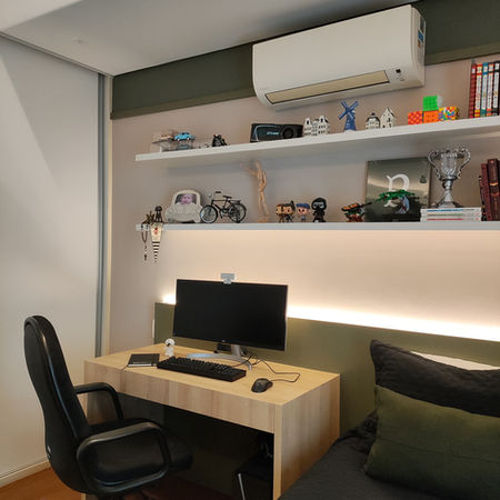 Os quartos passaram por grandes mudanças. O do casal ganhou móveis sob medida e papel de parede que imita madeira. O da filha, com tema rosa, teve teto, cortinas e detalhes em rosa chá, além de uma pintura de jardim florido.
